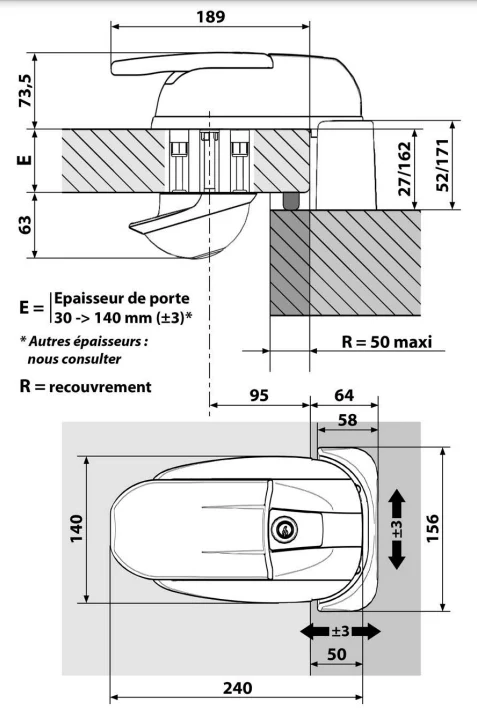 FERMOD - Fermeture 551 à clé Porte en surépaisseur 120 à 140 mm